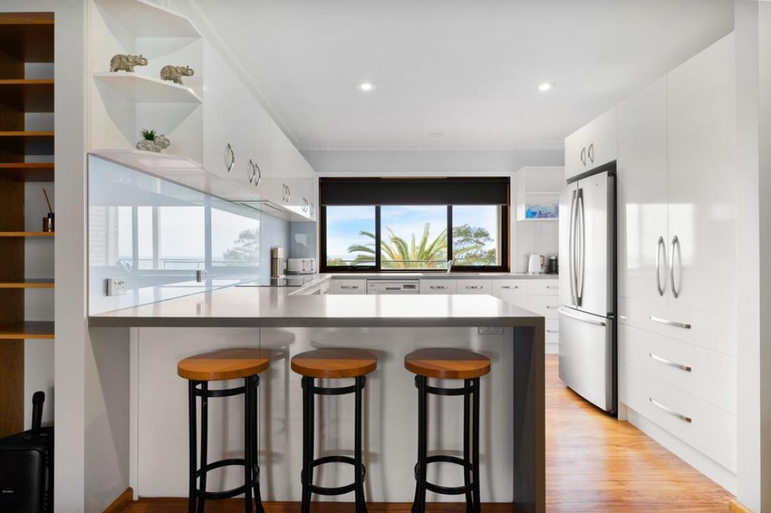 SENSATIONAL OCEAN VIEWS and you can hear the beach waves.Verandah/deck around all of the front of the house to enable watching the waves and the boats going past and an enclosed pergola off the kitchen/dining room with the barby and an outdoor setting for 10 plus other chairs and table outside to accommodate for more.